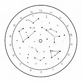 • Planisphère rotatif : disque de papier/carton avec une fenêtre qui laisse apparaître les constellations visibles selon l’heure et la date.