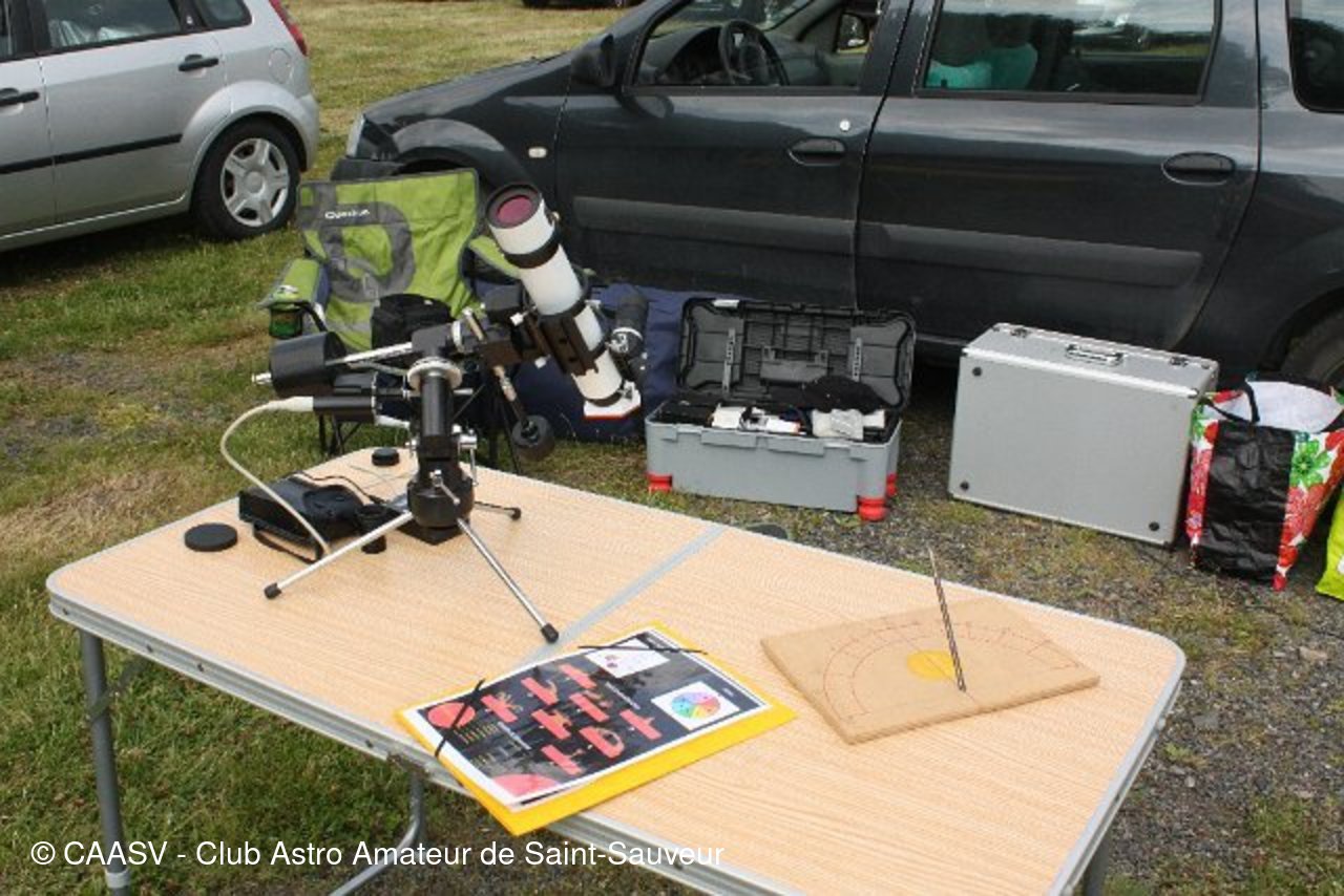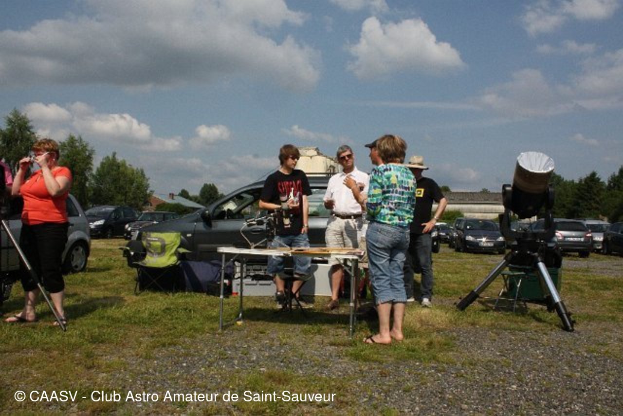 Le CAASV a été invité par le comité d’entreprise de Matra Electronique de Lacroix-Saint-Ouen pour animer la journée en proposant une observation du soleil. Grâce au Solarscope, à la lunette solaire Lunt, récemment acquise par le club, et aux télescopes équipées de filtres solaires le public a pu observer les protubérances et les tâches solaires.